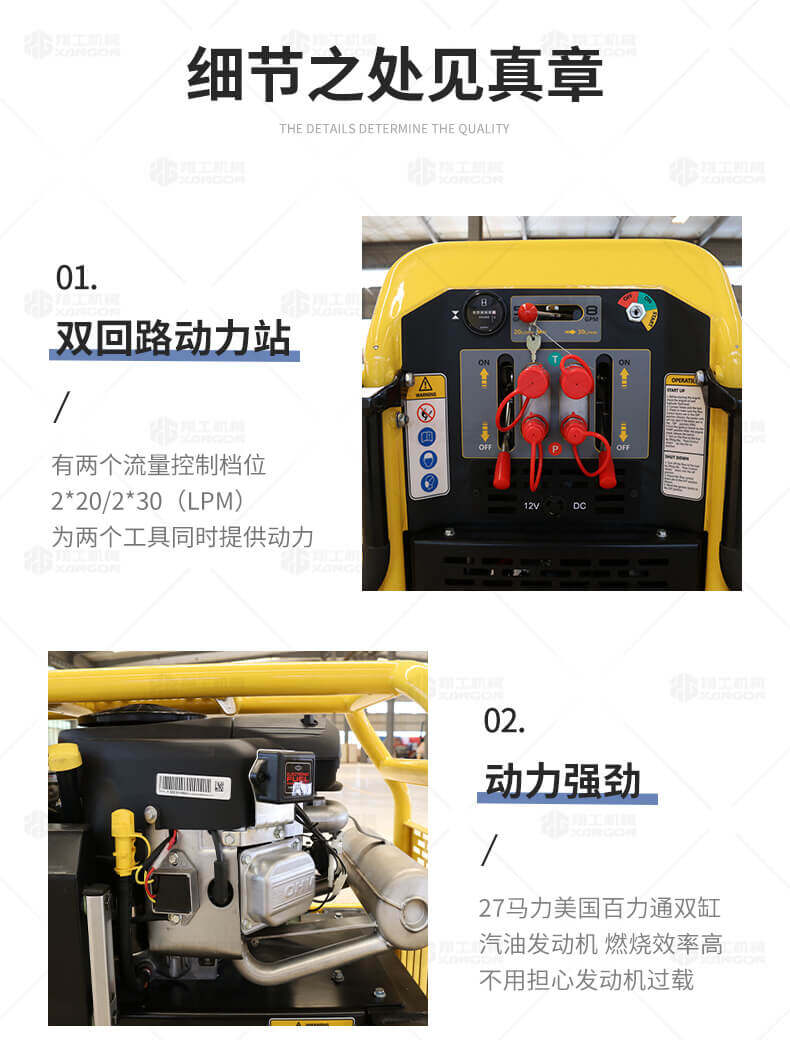 1.雙回路動力站,有兩個流量控制檔位2*20/2*30(Lpm),為兩個工具同時提供動力;