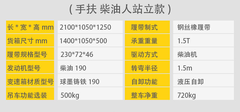 手扶式履帶運(yùn)輸車它是采用手扶式的方式駕駛,自動(dòng)靈活,安全可靠,可以在泥濘、結(jié)冰道路、沙漠、沼澤以及土質(zhì)松軟或氣候條件不太好的接近角和離地角行駛。它的性能穩(wěn)定,功能強(qiáng)勁,使用能力進(jìn)一步提高。運(yùn)載能力強(qiáng),爬坡能力大,操作簡單,維修保養(yǎng)容易。