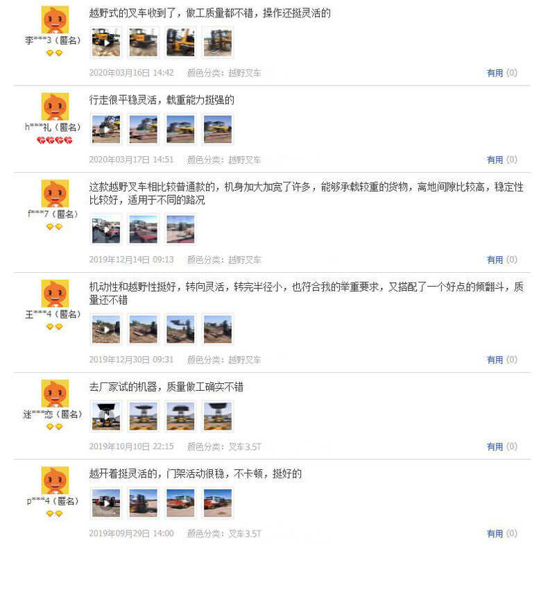 3.普通叉車只能在平整的路面上作業(yè),而越野叉車既可以在普通路面上作業(yè),還可以在山路泥路崎嶇道路作業(yè),輪胎抓地力強,不打滑。