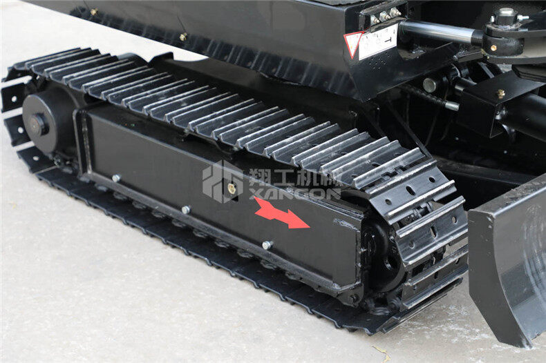 4、行走部分加裝兩個托鏈輪,減少了橡膠履帶的磨損,降低了摩擦的噪音,提高了橡膠履帶的使用壽命。